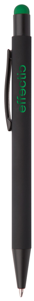 Hliníkové kuličkové a dotykové pero s pogumovanou úpravou a speciálním povrchem pro zrcadlový laser v barvě stylusu, s modrou náplní.