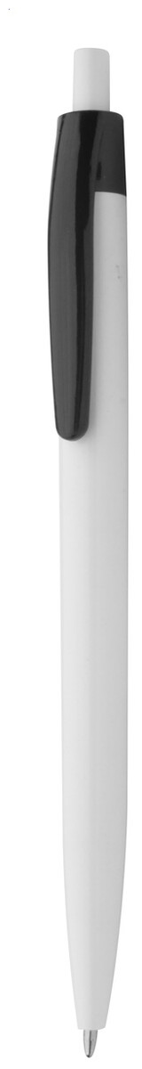 Plastové kuličkové pero s bílým tělem a barevným klipem, s modrou náplní.