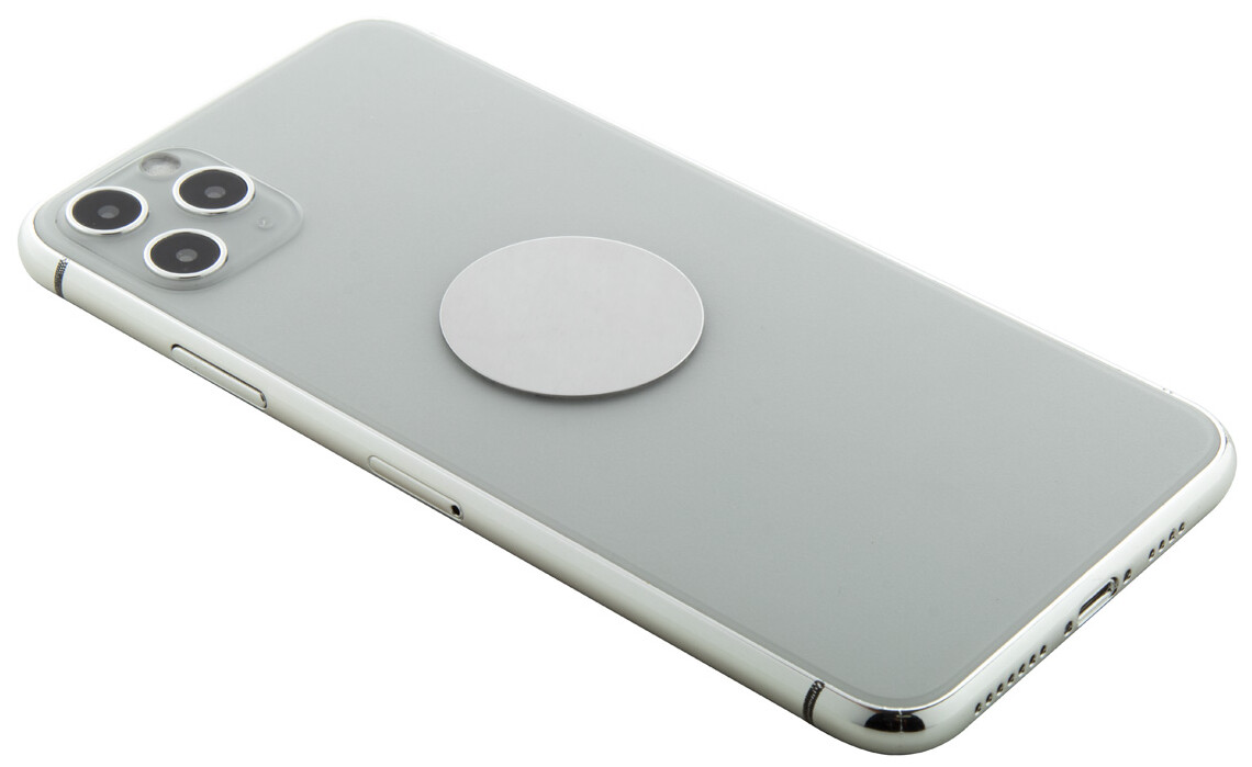 Hliníkový magnetický držák na mobilní telefon do auta s upevněním do větracího otvoru. Včetně samolepicího kovového plíšku.