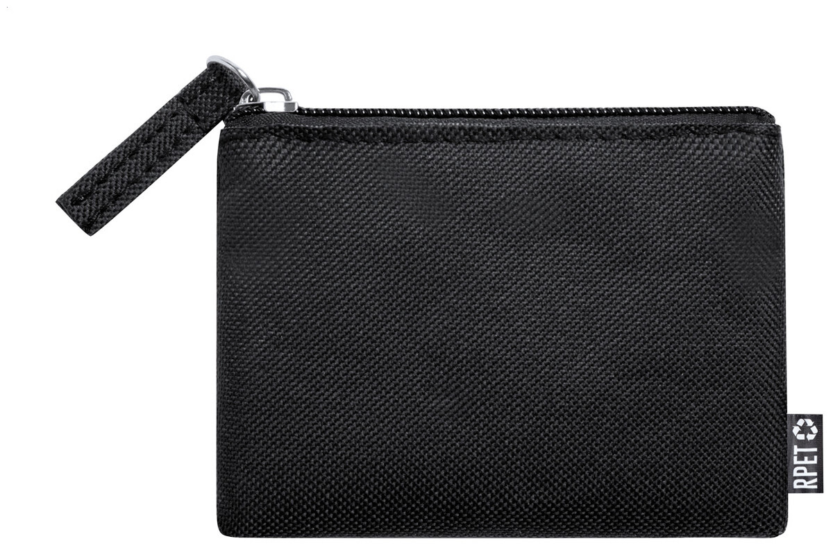 Peněženka na zip ze 600D RPET polyesteru, s etiketou s označením RPET.
