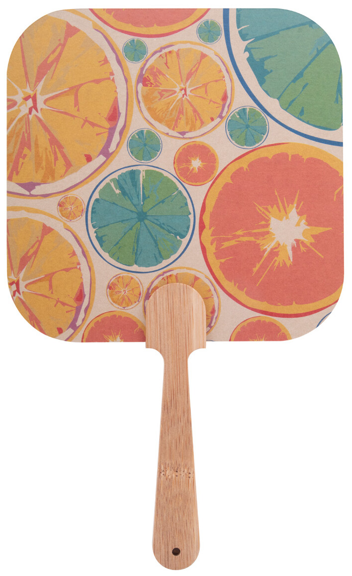 Vějíř vyrobený na zakázku s bambusovou rukojetí a kraftovým papírem. Cena zahrnuje digitální tisk na obou stranách, nezahrnuje tiskovou přípravu. Min. mn.: 100 ks.