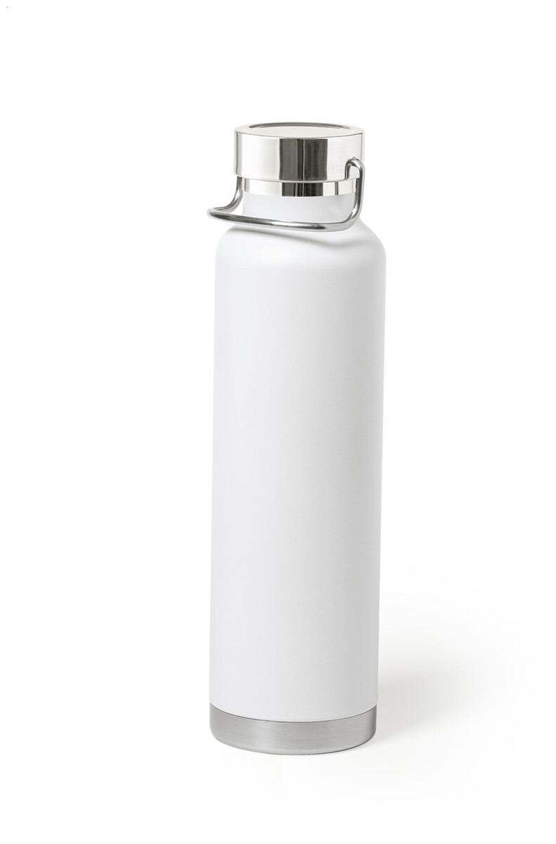 Dvoustěnná nerezová, mědí izolovaná termoska s přenosným víčkem, 650 ml. Měděná izolace udrží nápoje horké 12 a studené 24 hodin.
