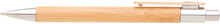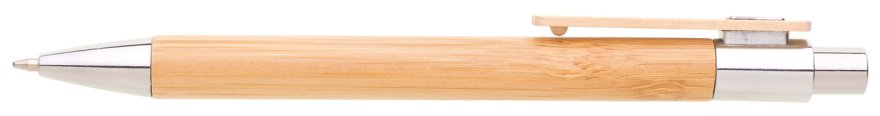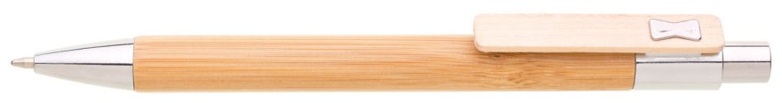 Bambusová propiska NUKAK s dřevěným klipem, chromovou špičkou a chromovým cvakátkem. Náplň velkoobsahová, modře píšící.