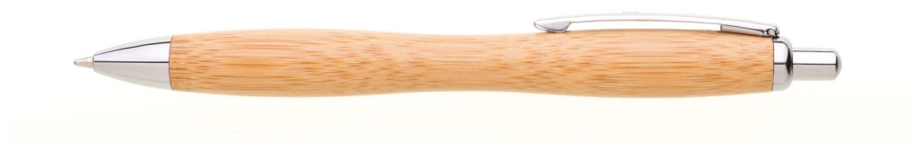 Bambusová propiska LESNA s chromovými doplňky. Náplň velkoobsahová, modře píšící.