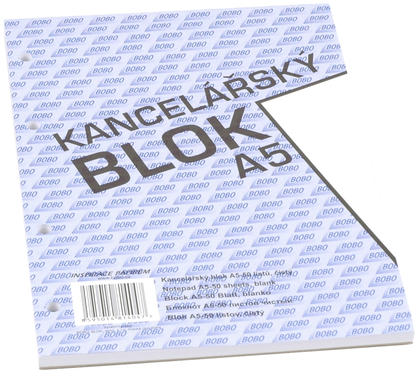 Kancelářský lepený, děrovaný blok, 50 listů. Formát A5, čistý.