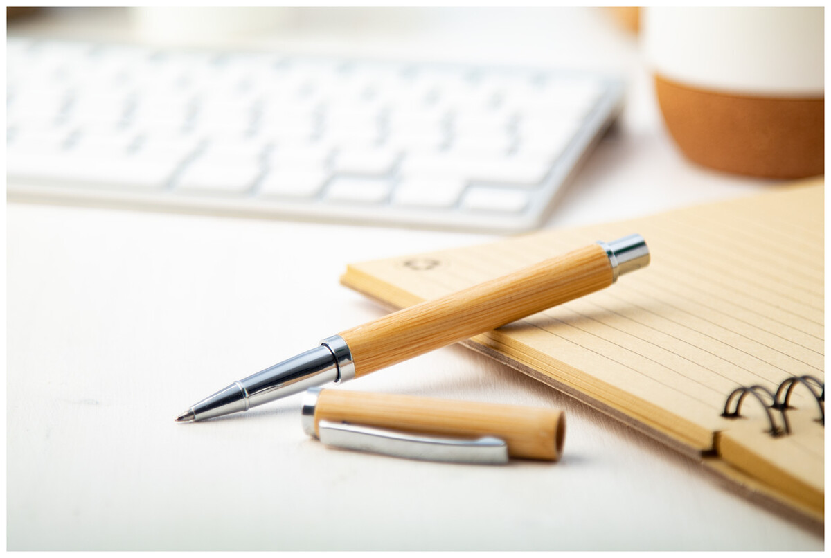 Bambusový roller s modrou náplní.