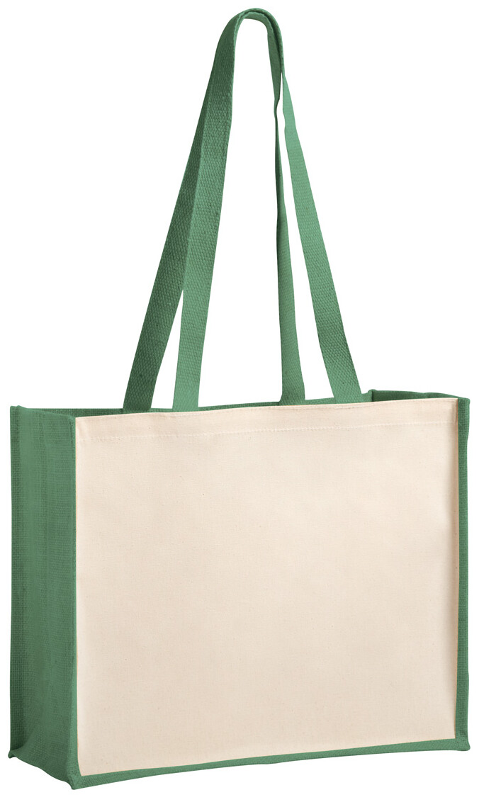 Nákupní taška v kombinaci z laminované juty a laminované bavlny s dlouhými uchy.