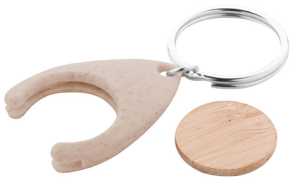 Bambusový žeton do nákupního vozíku v ekologické plastové klíčence z pšeničné slámy.