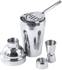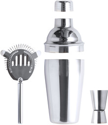 Nerezová koktejlová sada s 550 ml šejkrem, odměrkou a koktejlovým sítkem.