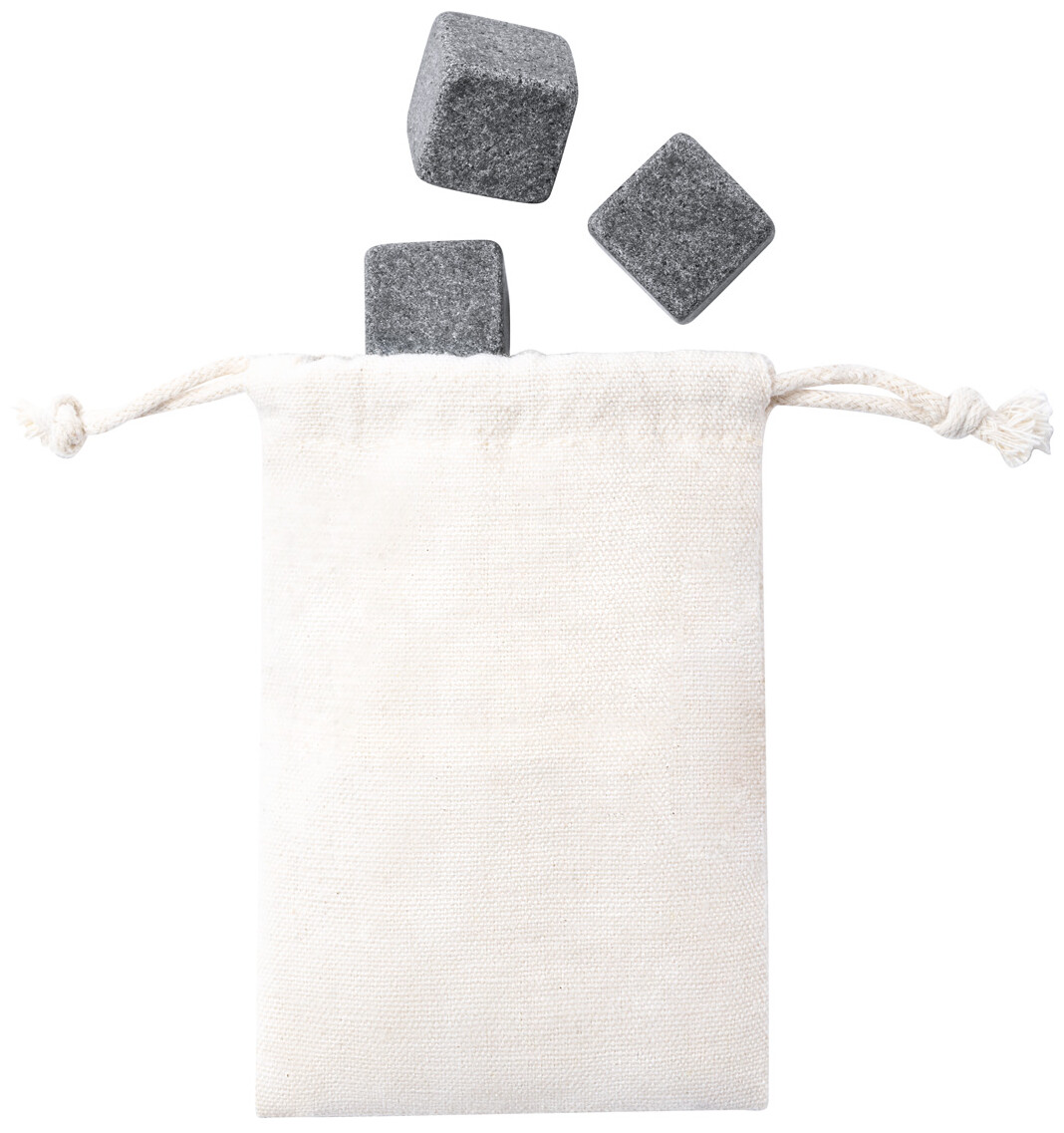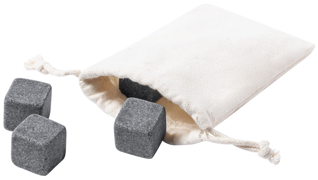 Sada 4 ks opakovaně použitelných chladících kamenných kostek v bavlněném sáčku.