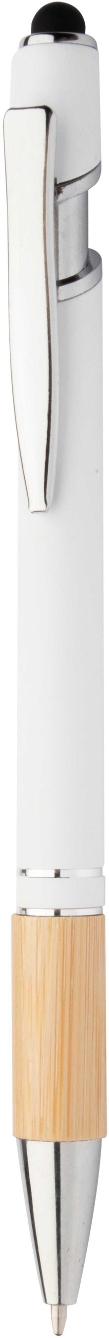 Hliníkové kuličkové a dotykové pero s bambusovým úchopem a pogumovaným povrchem. Se speciální vrstvou pro zrcadlové laserové gravírování. S modrou náplní.