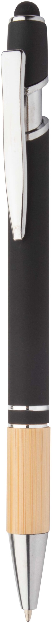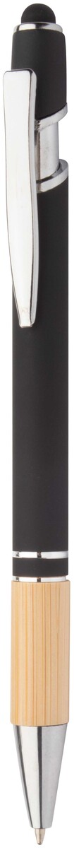 Hliníkové kuličkové a dotykové pero s bambusovým úchopem a pogumovaným povrchem. Se speciální vrstvou pro zrcadlové laserové gravírování. S modrou náplní.