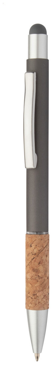 Hliníkové kuličkové a dotykové pero s úchopem z přírodního korku, matným povrchem těla a částí. S modrou náplní.