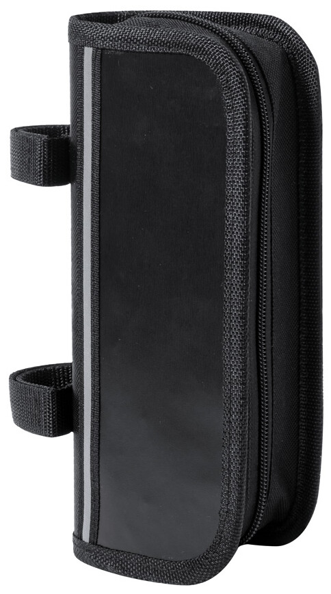 Sada na opravu jízdního kola v praktické tašce na rám kola. Včetně: 15 funkcí multifunkčního nářadí, šestihranného klíče, mini pumpy a sady na opravu defektu (2 páčky na pneumatiky, struhadlo a 6 záplat). 600D polyester.