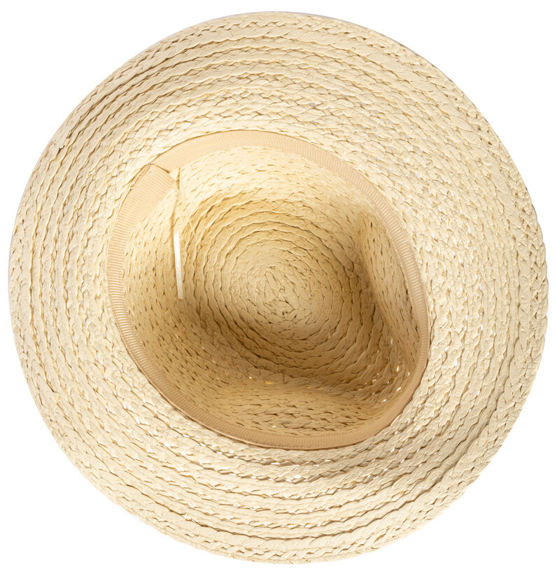 Unisex slaměný klobouk ze syntetického vlákna s nastavitelným vnitřním páskem. Tento klobouk nelze přímo potisknout; úpravy jsou možné pomocí našich stuh na klobouky se sublimačním potiskem (AP718139 / AP718367).