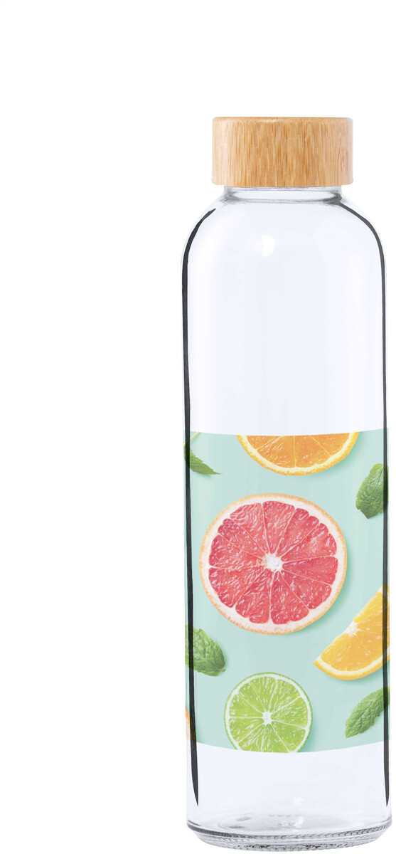 Skleněná láhev s bambusovým víčkem, 500 ml. Nevhodné pro sycené nápoje.