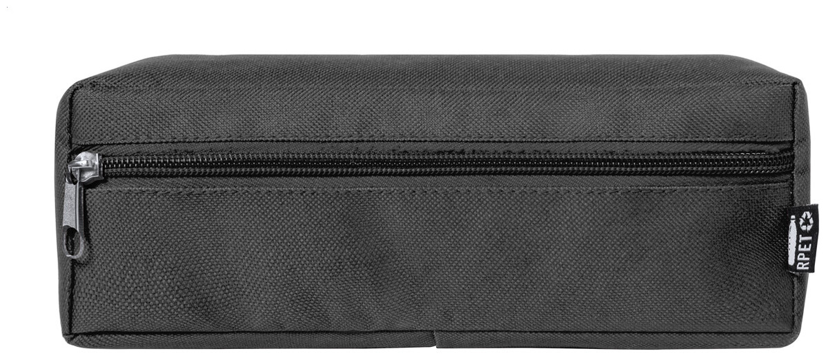 Polyesterové pouzdro na tužky RPET se zipem. Polyester RPET 600D, s výrazným štítkem RPET.