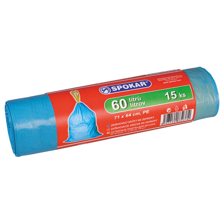 Pytle na odpad 70 l, zatahovací, 63 x 70 cm, 30 mic, modré, 15 pytlů na roli