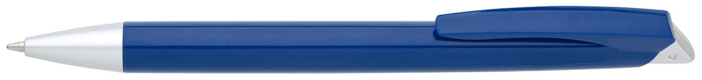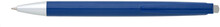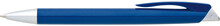 Plastová propiska z kolekce DESIGN, barevné tělo s matnými doplňky s atypickým zapínáním. Náplň velkoobsahová, modře píšící.