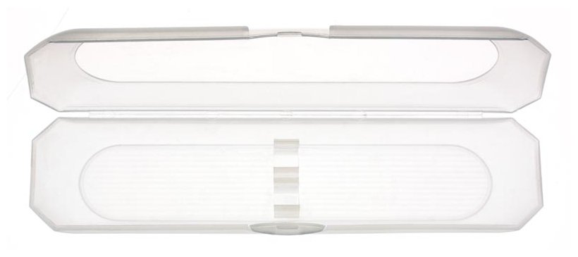pouzdro transparentní matné na 2 slabší pera. Baleno v bílé, lesklé papírové krabičce.
