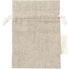 Dárkový pytlík z recyklované bavlny se stahováním na šňůrku. S výrazným štítkem z recyklované bavlny. 100% recyklovaná bavlna, 120 g/m2.