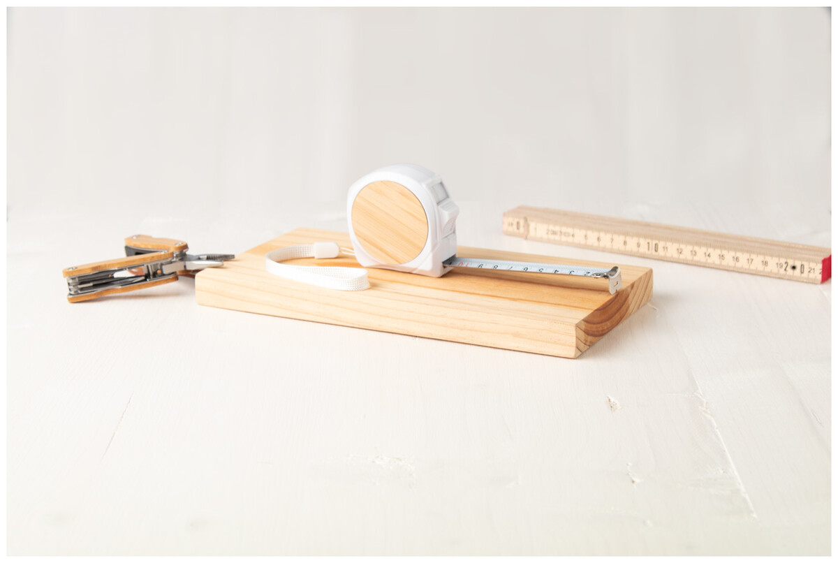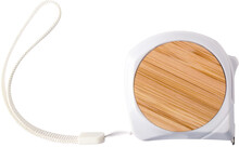 Plastový a bambusový svinovací metr s aretací, kovovým klipem a poutkem na ruku, 5 m.