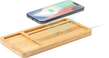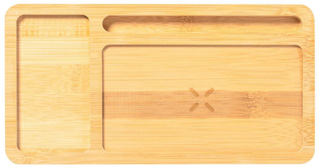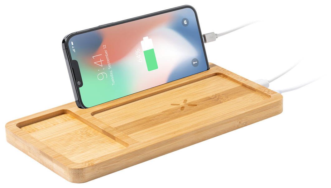 Bambusový stolní organizér a držák na mobilní telefon s vestavěnou bezdrátovou rychlonabíječkou (15W). S USB portem pro nabíjení 2 zařízení současně (1 bezdrátově a 1 přes kabel). Max. výstup: 2000 mA. Včetně USB nabíjecího kabelu.