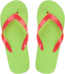 Plážové žabky na zakázku s PE podrážkou a PCV pásky. Barevnost podrážky a pásků lze na vyžádání kombinovat. Min. mn.: 50 párů/kombinace.