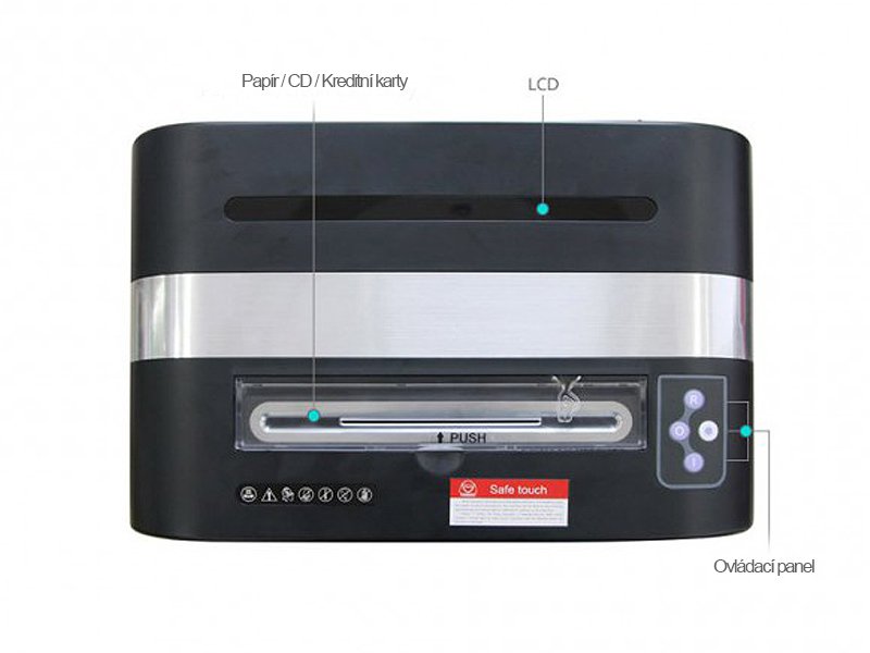 Kvalitní skartovací stroj ergonomického designu.