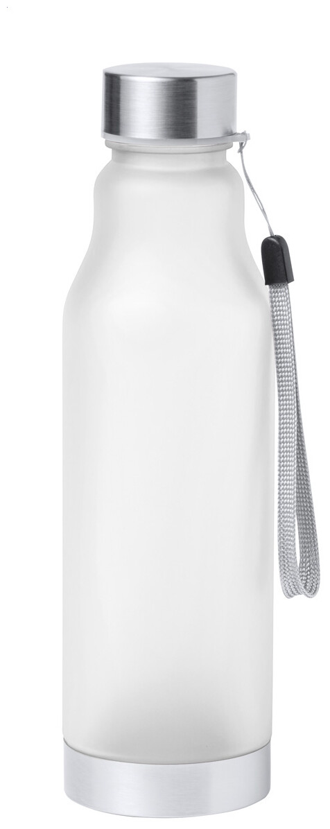 Láhev RPET s popruhem, nerezovým uzávěrem a dnem, 600 ml. Bez BPA. Nevhodné pro sycené nápoje.