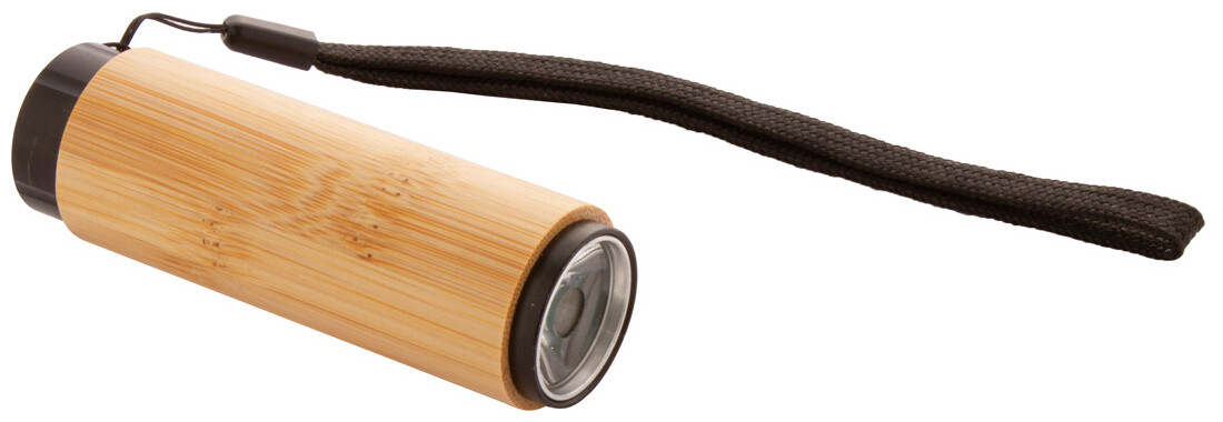 Bambusová hliníková baterka s COB LED a poutkem. Se 3 bateriemi AAA.