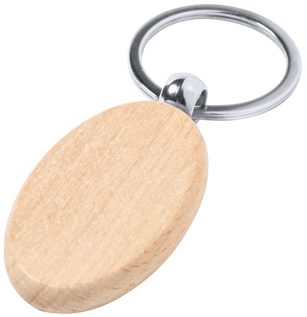 Přívěsek na klíče z přírodního bukového dřeva s kovovým kroužkem.