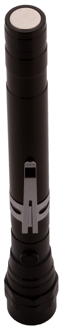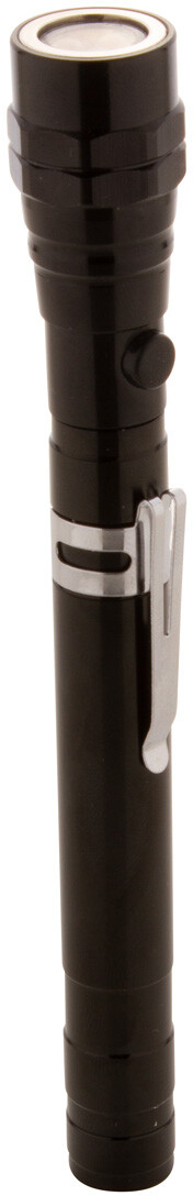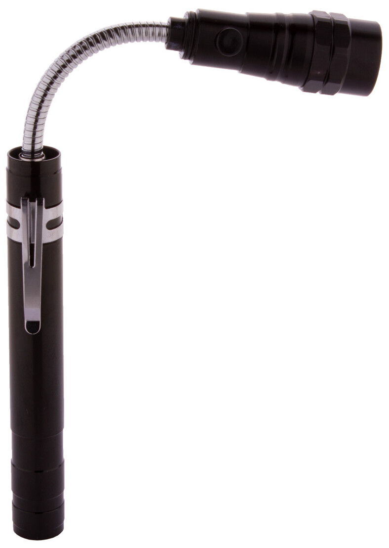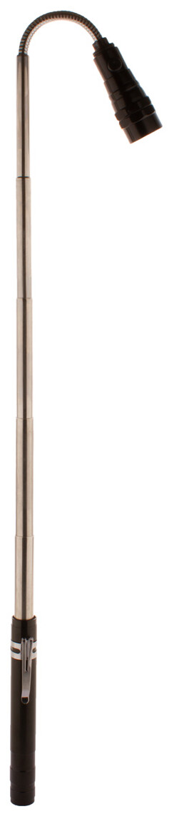 3 LED hliníková svítilna s výsuvnou a flexibilní hlavou, magnetem nahoře a kovovou boční sponou. Včetně knoflíkových baterií. Max. délka: 57 cm.