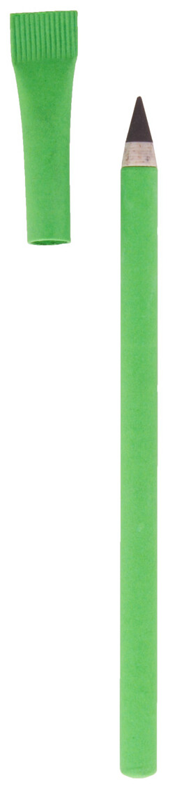 Bez inkoustové pero z recyklovaného papíru s dlouhou životností a odpovídající barevnou krytkou. S plastovou špičkou z pšeničné slámy a kovové slitiny, která oxiduje papír. Toto pero píše podobně jako tužka a navíc je stíratelné.