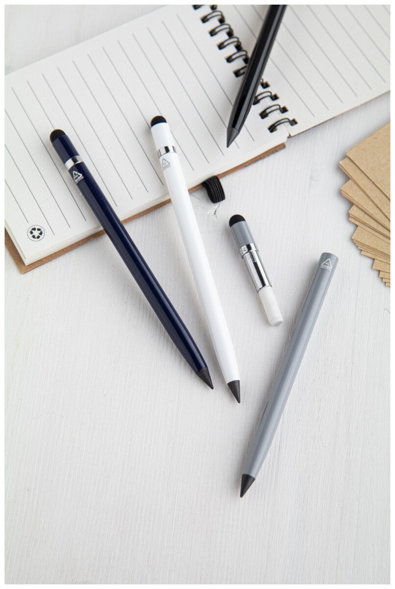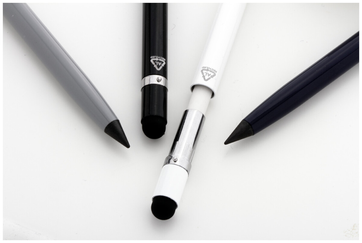 Pero bez inkoustu s dlouhou životností z recyklovaného hliníku s dotykovým perem a hrotem z kovové slitiny, který oxiduje papír. Toto pero píše podobně jako tužka a je také stíratelné. Včetně gumy na vnitřní straně dotykového stylusu.