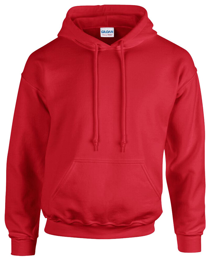 Mikina s kapucí z 50 % bavlny a 50 % polyesteru s přední kapsou. 271 g/m2 (bílá 257 g/m2). Výrobek značky Gildan.