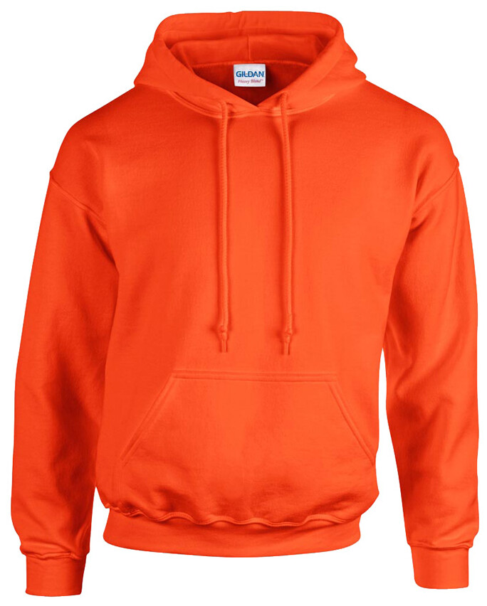 Mikina s kapucí z 50 % bavlny a 50 % polyesteru s přední kapsou. 271 g/m2 (bílá 257 g/m2). Výrobek značky Gildan.