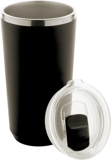 PP plastem pokrytý dvoustěnný, nerezový termo hrnek s víčkem na pití. 500 ml.