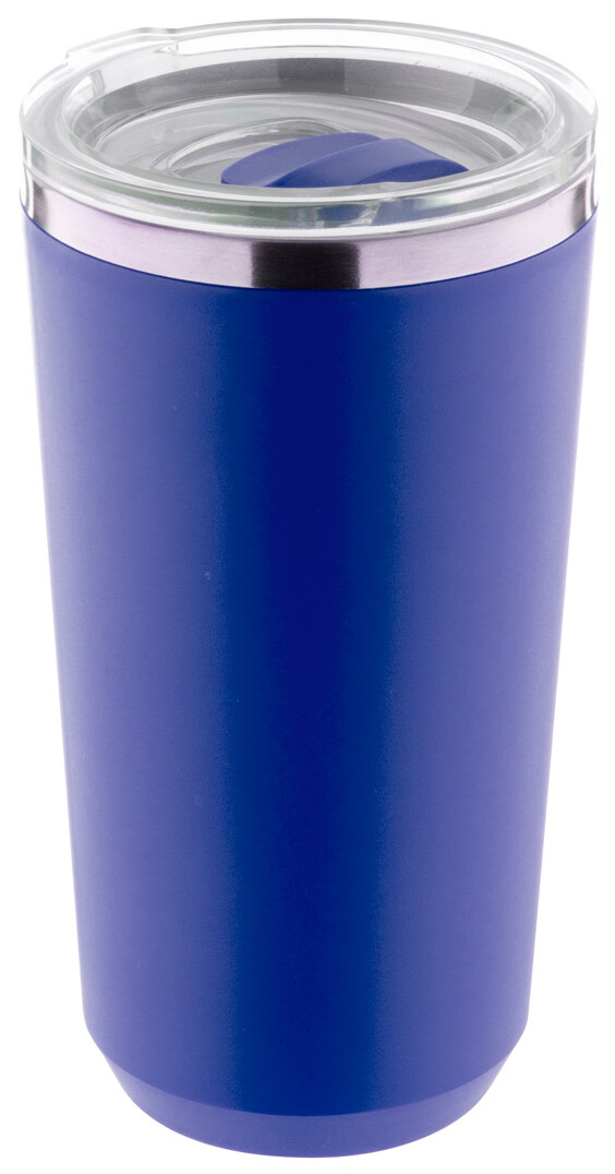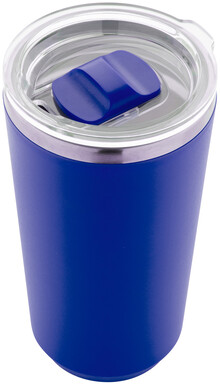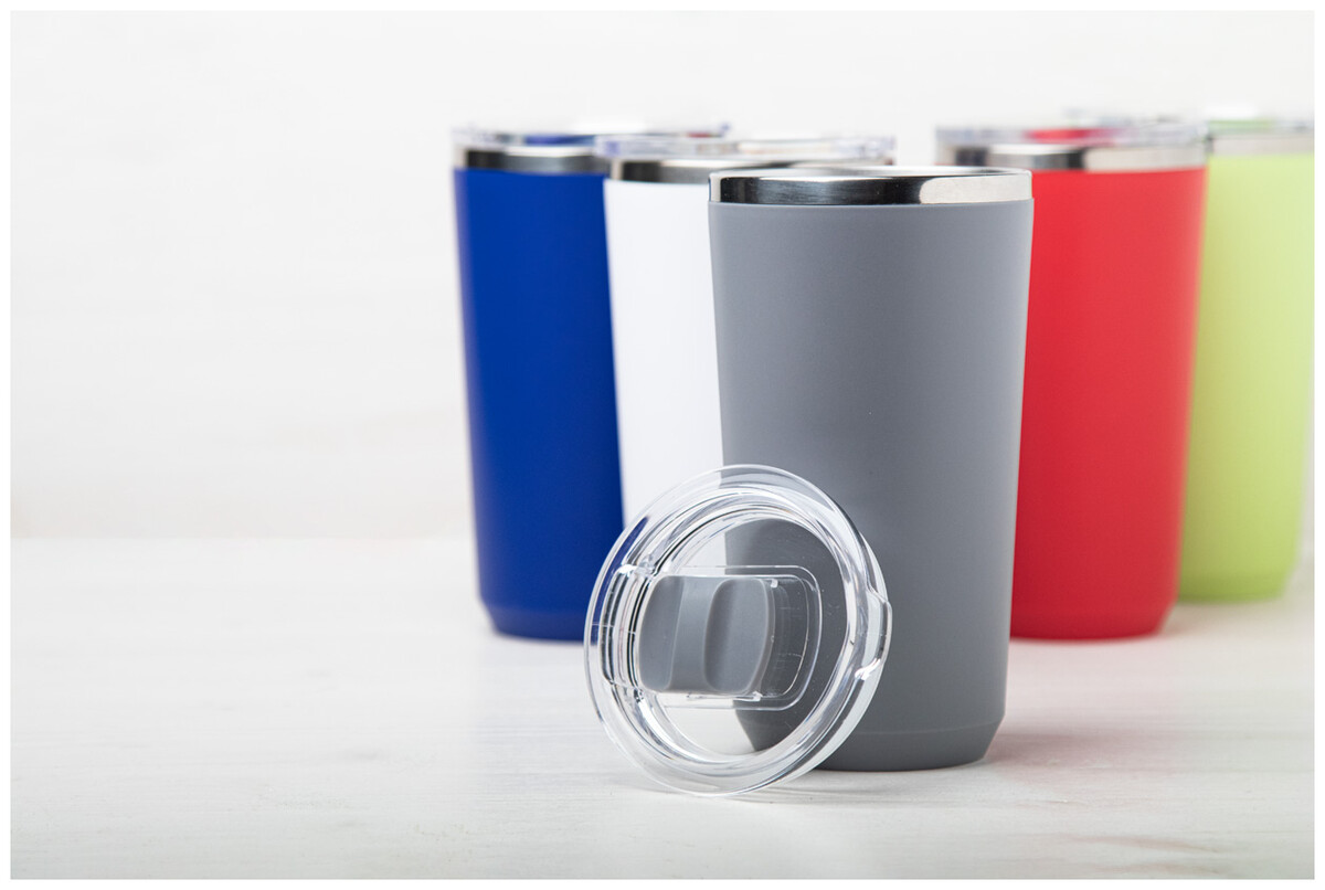 PP plastem pokrytý dvoustěnný, nerezový termo hrnek s víčkem na pití. 500 ml.