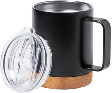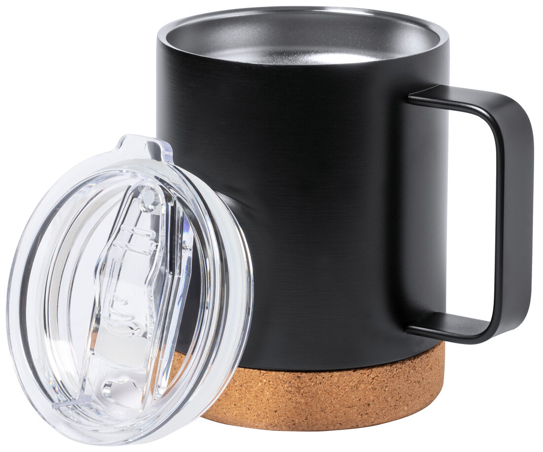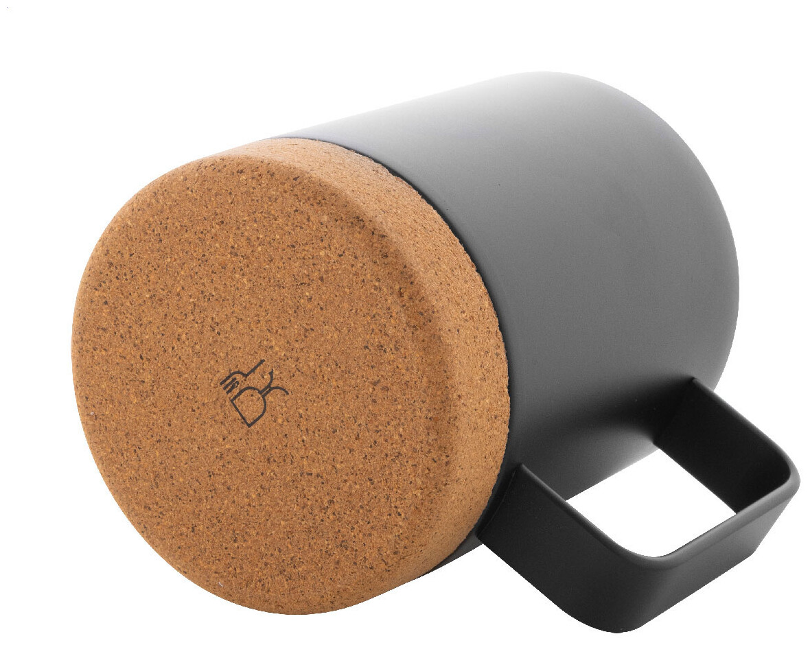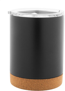 Dvoustěnný nerezový termohrnek s víčkem na pití a dnem z přírodního korku, 330 ml. V kraftové papírové krabici.