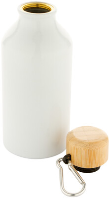 Hliníková láhev s bambusovým víčkem a karabinou, 400 ml.
