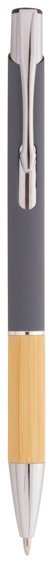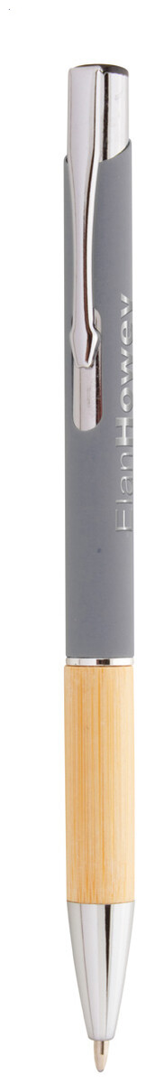 Hliníkové kuličkové pero s bambusovým úchopem, pogumovaným povrchem a modrou náplní. Se speciální vrstvou pro zrcadlové laserové gravírování.