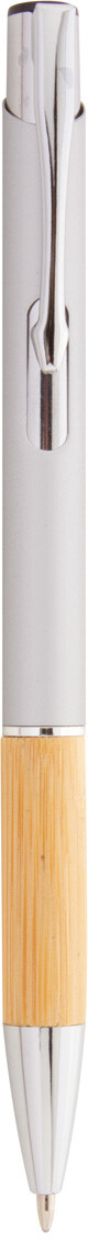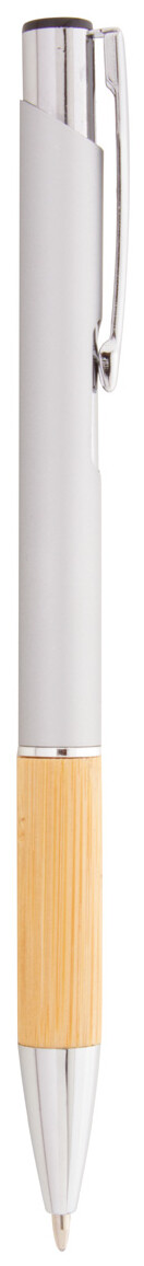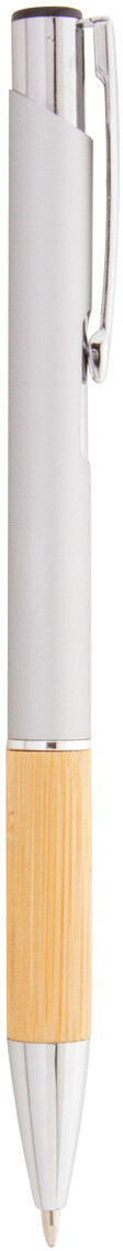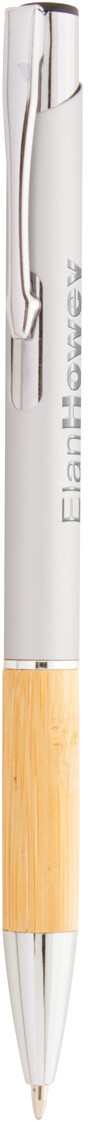 Hliníkové kuličkové pero s bambusovým úchopem, pogumovaným povrchem a modrou náplní. Se speciální vrstvou pro zrcadlové laserové gravírování.