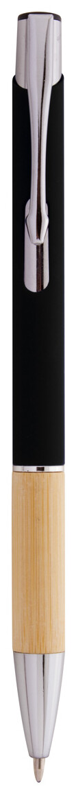 Hliníkové kuličkové pero s bambusovým úchopem, pogumovaným povrchem a modrou náplní. Se speciální vrstvou pro zrcadlové laserové gravírování.