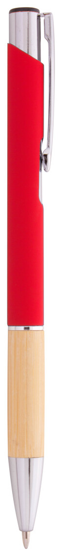 Hliníkové kuličkové pero s bambusovým úchopem, pogumovaným povrchem a modrou náplní. Se speciální vrstvou pro zrcadlové laserové gravírování.