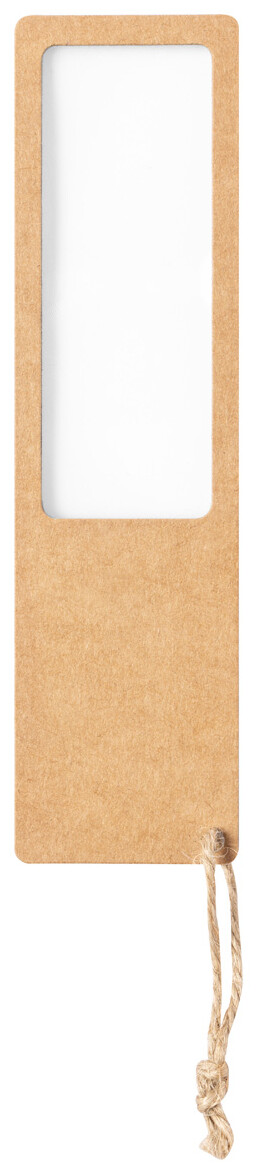 Záložka z recyklovaného papíru s lupou a provázkem.