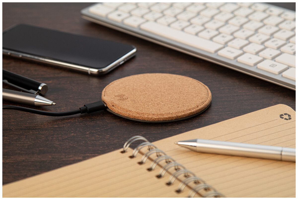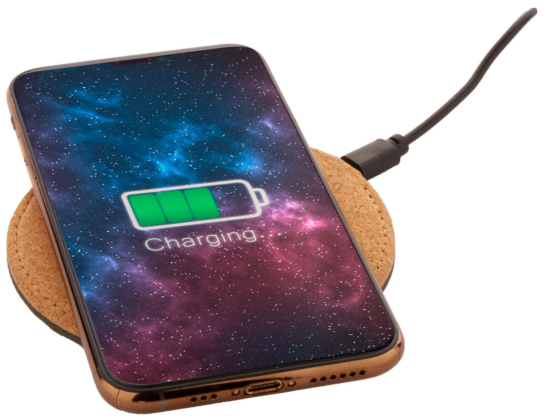 Bezdrátová rychlonabíječka s přírodním korkem (10W) se spodní částí z PU kůže. Včetně USB nabíjecího kabelu.