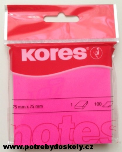 BLOČEK SAMOLEPÍCÍ KORES NEON 75x75/1 růžový