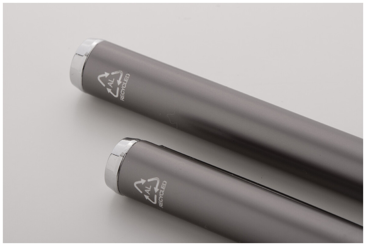 Sada pera z recyklovaného hliníku s rollerem a kuličkovým perem v černé papírové dárkové krabičce. S modrou náplní.