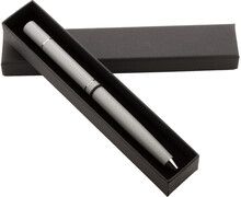 Kovové kuličkové pero 2v1 a pero bez inkoustu v černé dárkové krabičce. S modrou náplní a špičkou z kovové slitiny, která oxiduje papír.